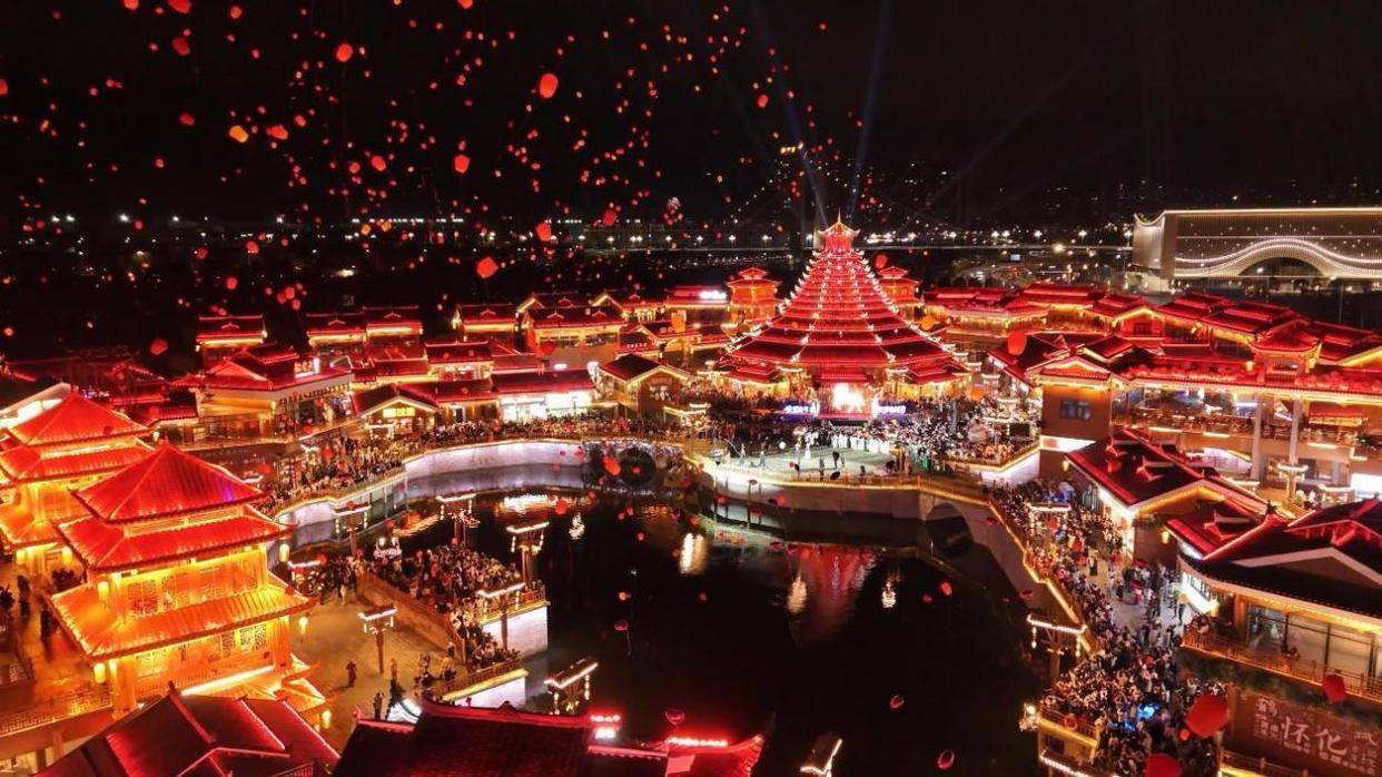怀化洪江古商城这座千年古城在新潮的旋律中灯火璀璨、流光溢彩。1月1日晚,电广传媒、湖南经视联合打造的2026“超级大舞台 唱响古商城”首秀拉开帷幕,震撼人心的无人机表演吸引了众多游客现场观看。作为“2026超级老声”首站,“超级大舞台 唱响古商城”元旦假期每晚迎来8名t/span>